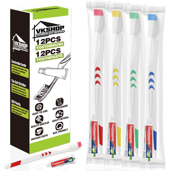 - 【Economical and cost-effective】:VKshop 12 individually wrapped bulk toothbrushes and 12bulk toothpastes,compared with purchasing a travel pack of toothpaste and toothbrush, the disposable combination travel toothbrush set is more economical and ideal for your short-term trips