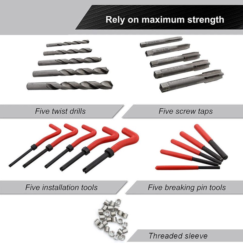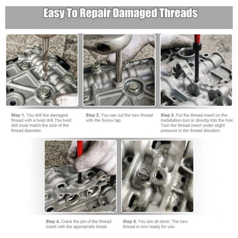 131pc Professional Thread Repair Kit Restoring Damaged Threads. Ideal for restoring damaged threads, suitable for engine and other automotive applications.