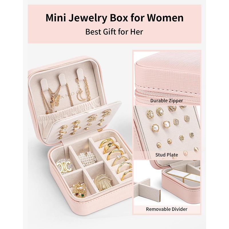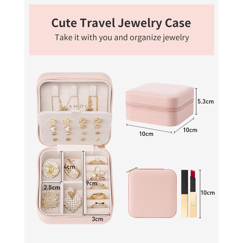 - MINI SIZE - 3.9*3.9*2inch/10*10*5cm, Travel jewelry case is portable and light weight, easy to carry in your handbags or in your luggage