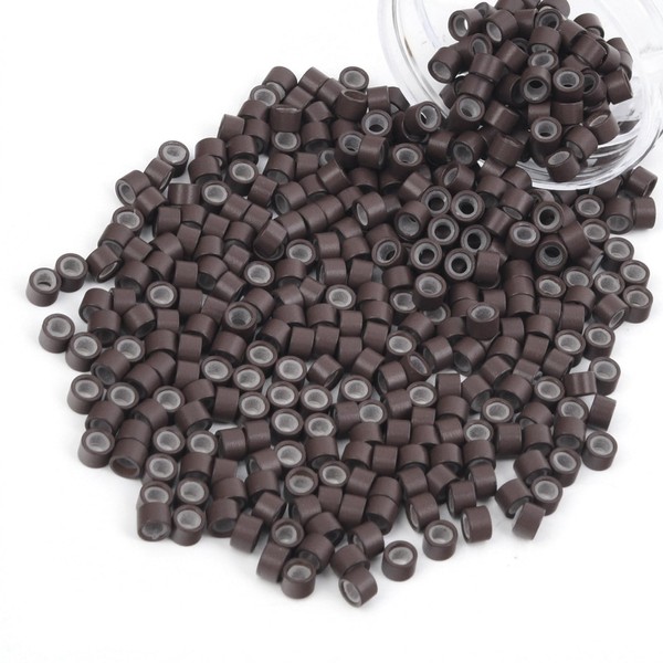 Vlasy 400Pcs 4mm Silicone Lined Micro Ring Beads for Hair Extensions 5Colors Apply (400Pcs Brown)