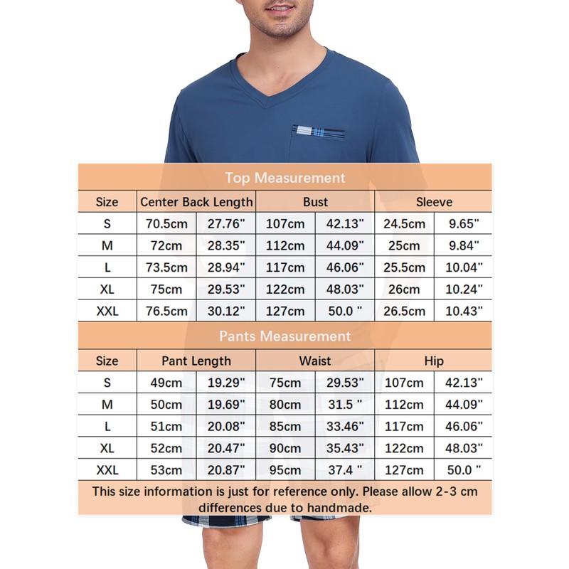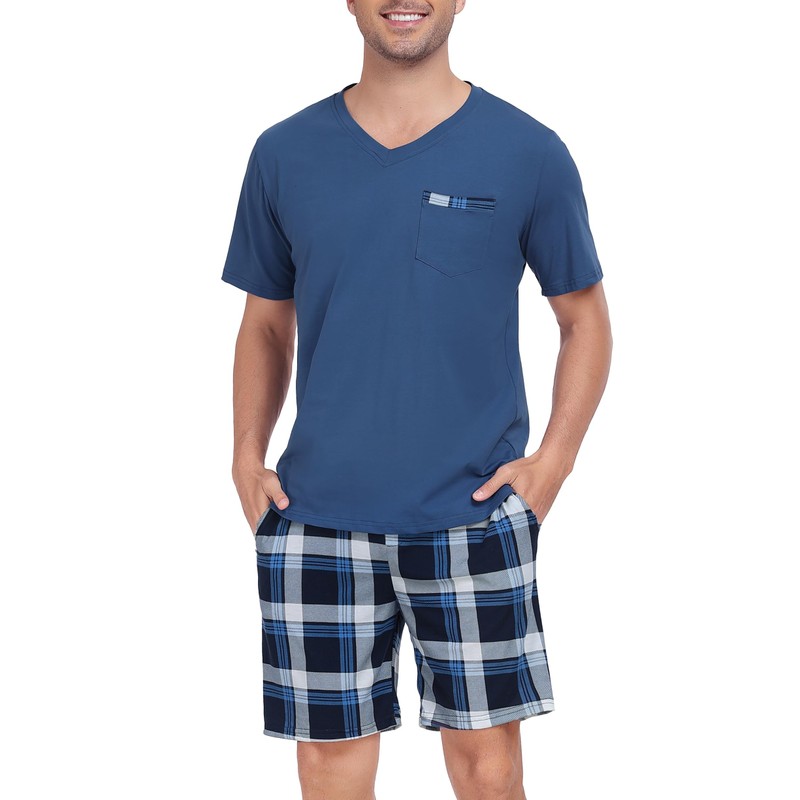 - 【CLASSIC DESIGN】Stay stylish and comfortable with our men's pyjama shorts set. It includes a short-sleeved top and stretchy shorts with a two-side pocket and elastic drawstring waist design, making it an ideal sleepwear choice for any season.