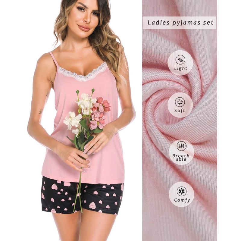 - ❤【OCCASIONS & CARE】The ladies shorts and vest pyjamas can be worn as sleepwear,casual fit. Buy this comfy camisole and shorts set as a perfect gift for your wife, daughter, girlfriend,mother or lovers. Machine wash /Hand-wash max 40°C. Do not bleach. Dry gentle, tumble dry. Do not soak for a long time.