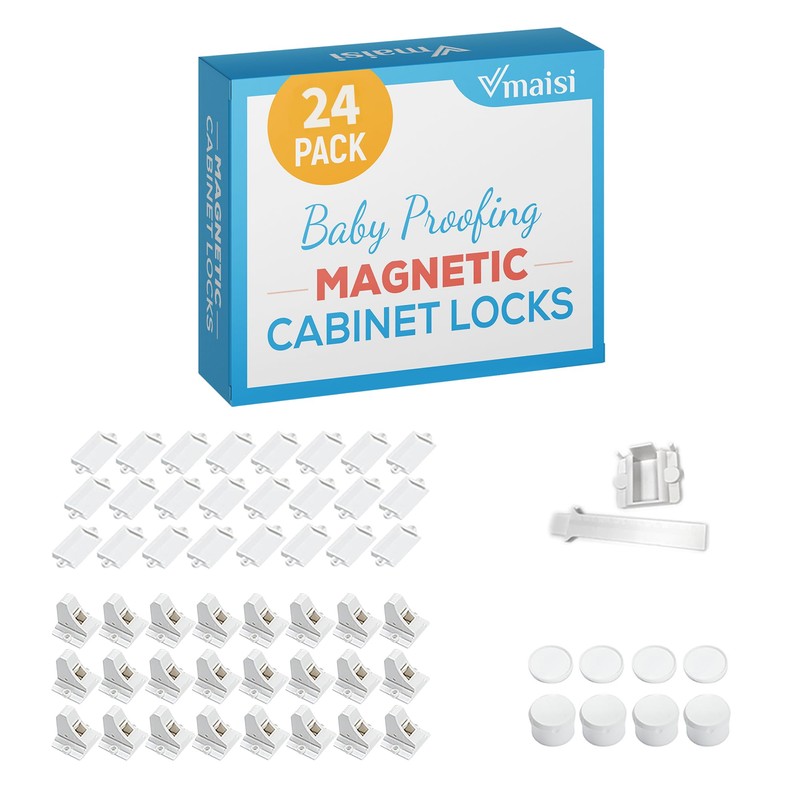 Vmaisi Adhesive Magnetic Locks for Cabinets & Drawers (24 Pack and 4 Keys + Cradle)