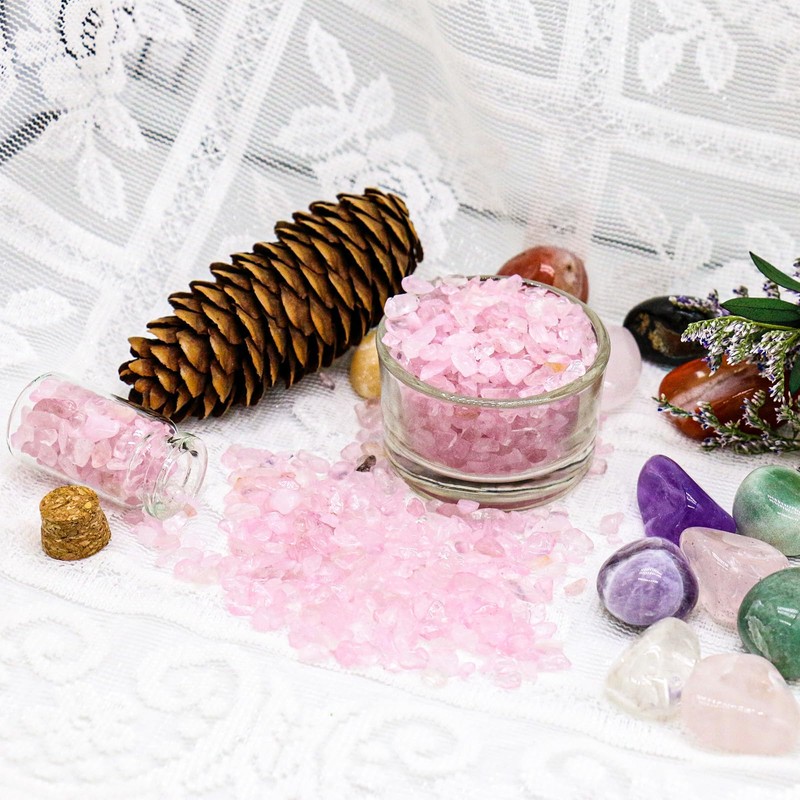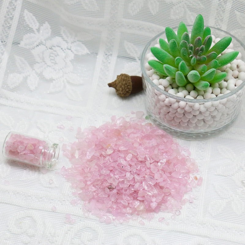 - Natural Crystal Gravel: Polished from selected natural crystal rocks, pure natural color, with texture, about 5-7 mm (0.12 inches - 0.23 inches) in size,Weight: 250g.As they are irregular crystal chips formed by raw crystals,they have a lot of features waiting for you to get creative. You can use them as terrarium supplies to DIY wishing bottles and lass fairy bottles,make crystal grids,chakra healing,energy balancing,reiki and more.
