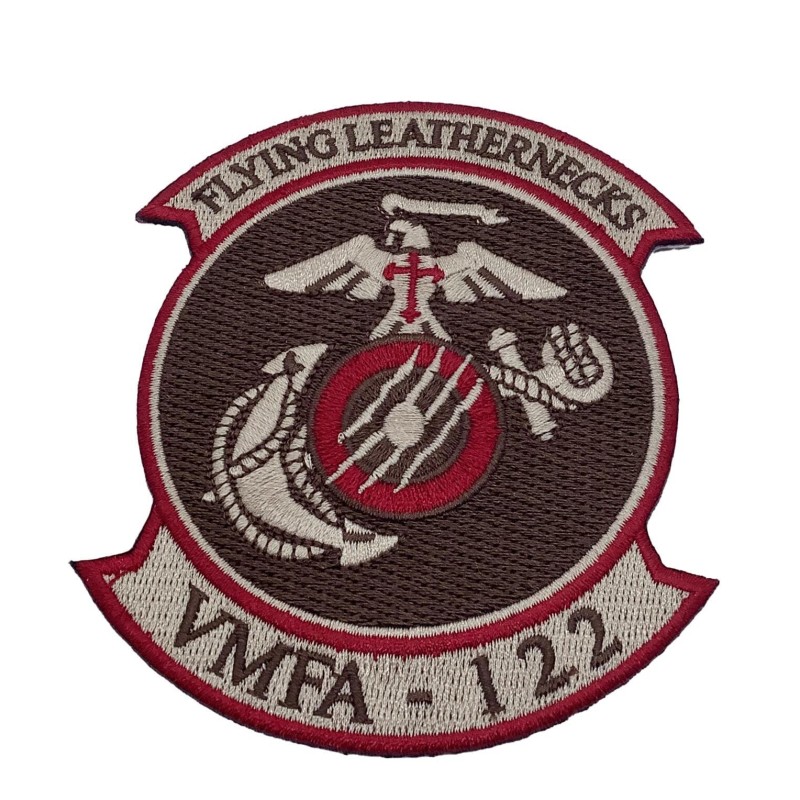 A 4" No Hook and Loop Squadron Patch of the VMFA-122 Flying Leathernecks.