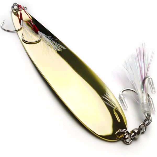 - 【Magnum Flutter Spoons with Flashabou Tail】The hooks are adorned with pearl flashabou, adding a touch of shimmering brilliance to mimic the natural sparkle of baitfish and further enhance their allure. VMSIXVM fishing spoon perfect for long casting, the spoons have a nice action in the water and can even be reeled in faster for near-surface retrievals. Spoon with barrel swivel not going to twist up .