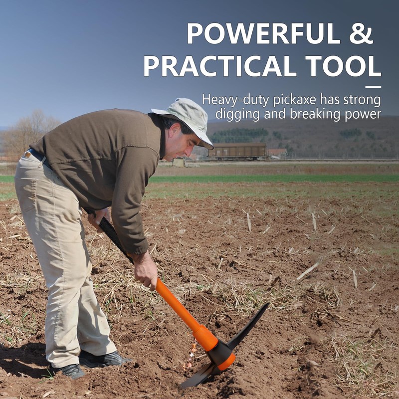 - Ideal Size: The heavy duty pickaxe is designed with a standard length of 38 inches, providing adequate operating space and reducing the need to bend over or overextend, this helps avoid strain on the lower back, the pickaxe is suitable for users of most heights and are easy to use from different angles, thus increasing efficiency.