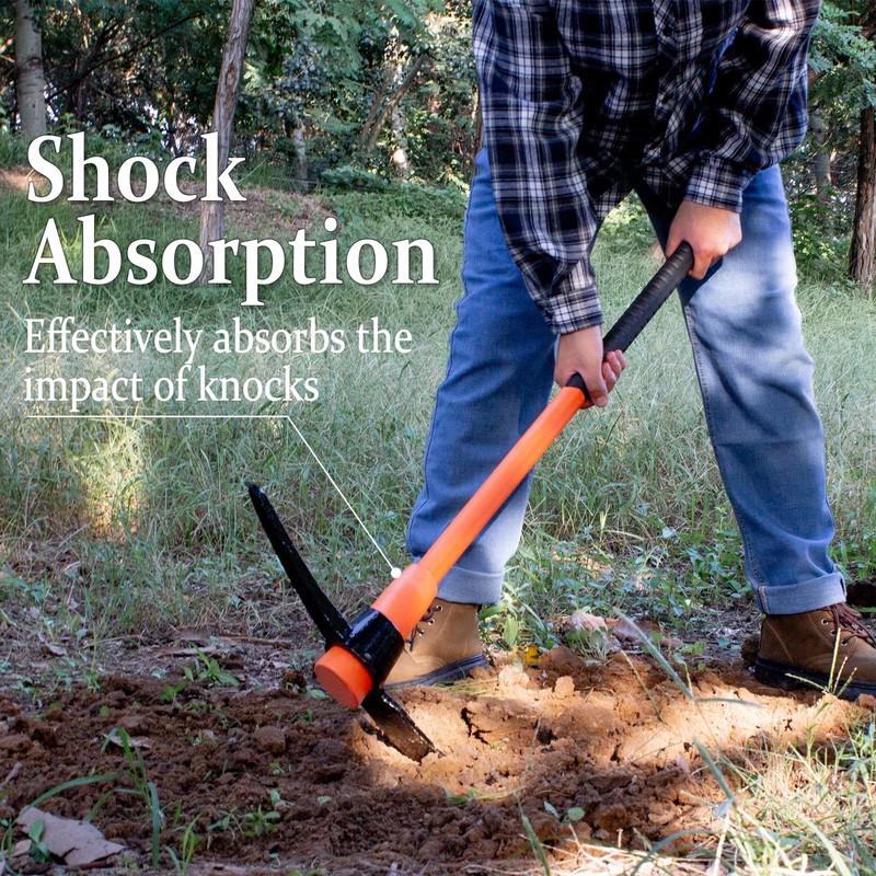 - Innovative Shock-Absorbing Technology: Equipped with an innovative shock-absorbing handle, the pickaxe absorbs impact effectively, reducing vibration and pressure on the wrist and arm. Long-term use becomes less fatiguing, and comfort is significantly improved, making this pick mattock ideal for prolonged tasks.