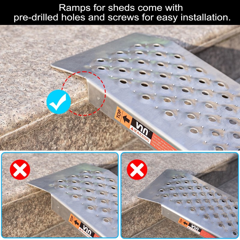 - Easy installation:Ramp for shed with pre-drilled holes and hardware for easy attachment. Get a sturdy shed access point in minutes.