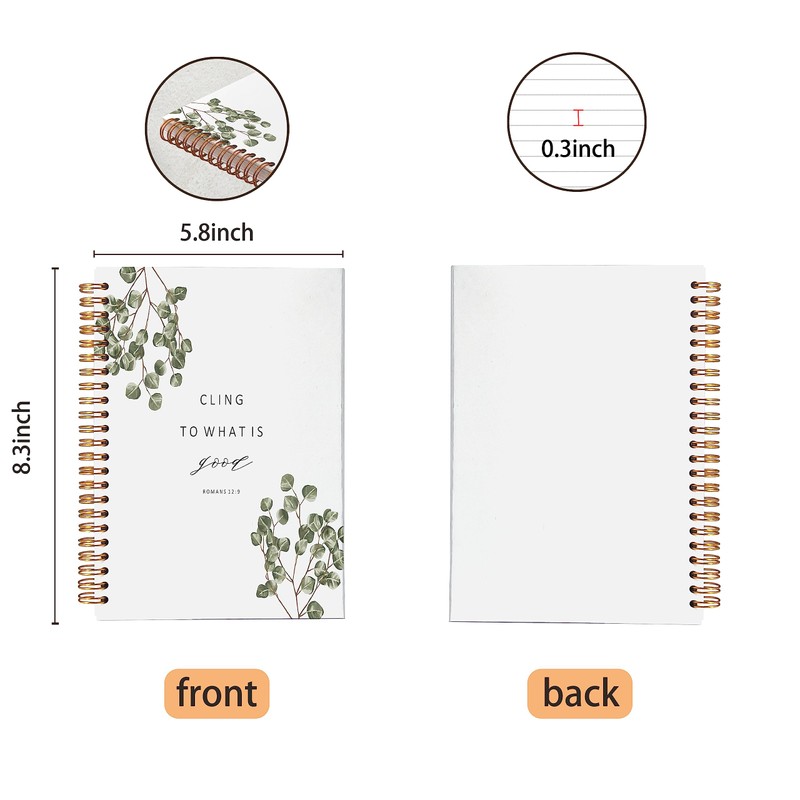 VNWEK Bible Scripture Romans 12:9 Cling to What is Good Motivational Eucalyptus Leaf Spiral Notebook Journal 5.5 x 8.3 inches,Christian Lined Hardcover Spiral Notebook,Christian Gifts