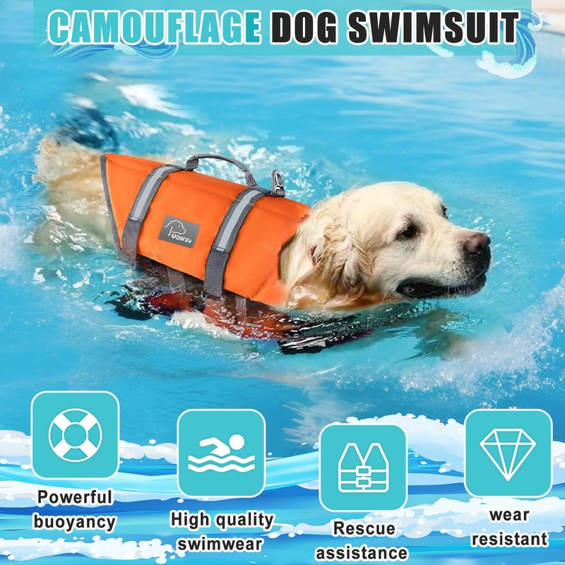 - PREMIUM MATERIAL: This dog life vest is made of high grade polyester oxford & nylon and mesh fabric, which is not only ripstop but also allow for quick drying and proper drainage. The dog swimsuit offers great buoyancy they need while moving freely in the water. This float vest allows your dog to swim like a fish and enjoy worry-free water adventures, whether they are an experienced swimmer or a novice