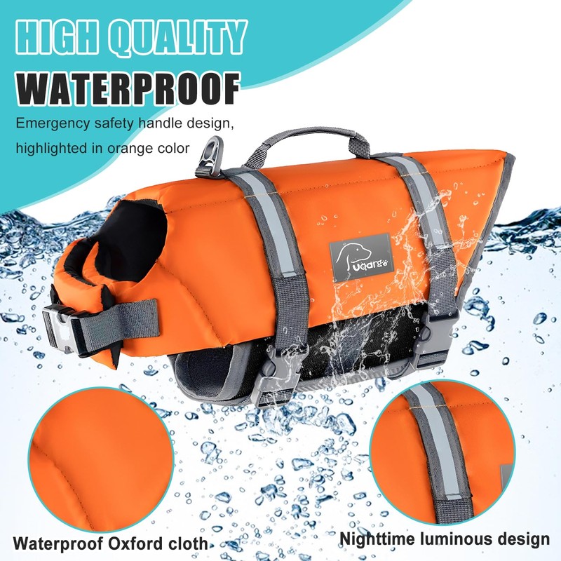 Voarge Dog Life Vest, Swimming Float Jacket Adjustable, Dog Life Jacket for Small, Medium, Large Dogs with Rescue Handle Flotation Vest (Orange, L)