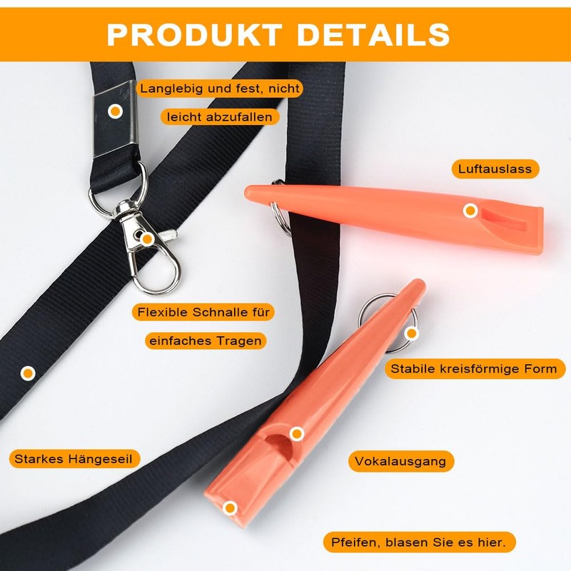 - Always with you: thanks to its high-quality whistle band, the whistle can be comfortably hung on the shoulder or worn on the wrist. So you always have the important utensil with you during all dog walks. The risk of losing is also minimised.