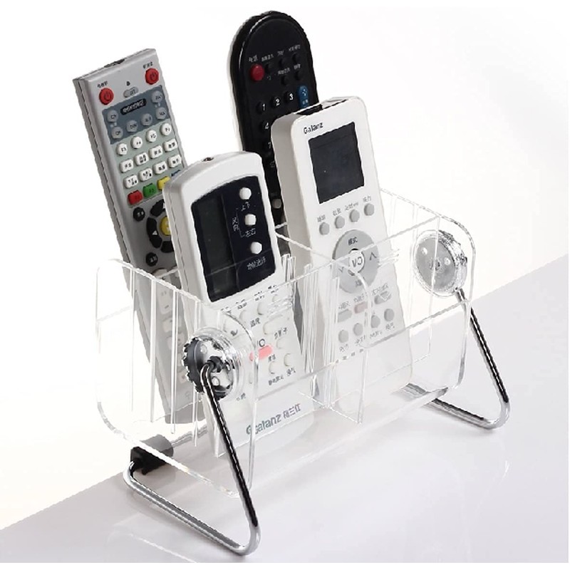 - PERFECT DIMENSIONS 18cm wide, 12cm high and 11.5cm deep, the accessory TV mount fits comfortably on a coffee table or desk.Place the holder anywhere without taking up the entire surface. Design acrylic remote control holder with 6 compartments for up to 6 remote controls.