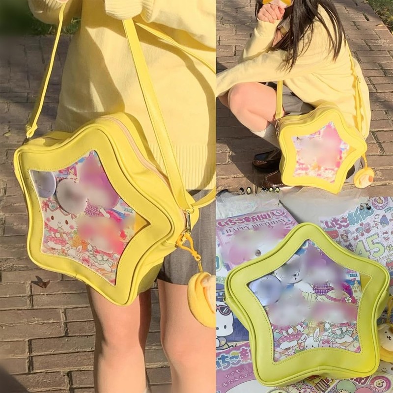 - STYLISH DESIGN: Stand out with this cute star-shaped backpack that features an Ita Bag Pins Display, perfect for displaying your favorite pins, brooches, and other collectibles.