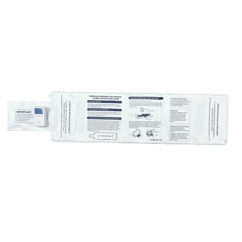 - Easy to use and set up: the bed sensor pad connects wirelessly to the portable pager. The alarm vibrates or sounds when your loved one moves out of the alarm zones. Our bed sensor pad is waterproof and easy to wipe clean.