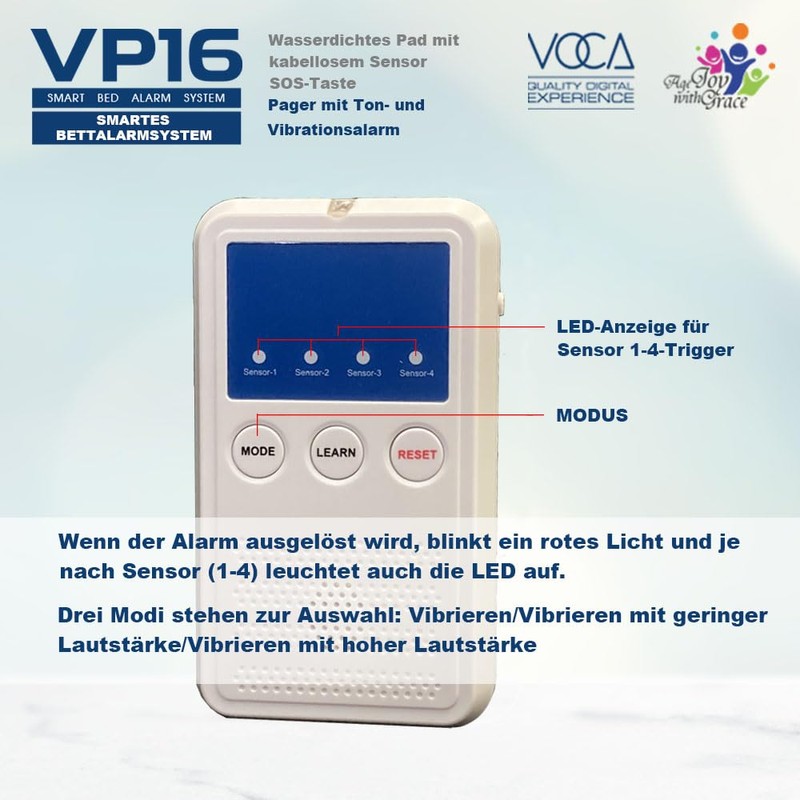 VOCA Smart Bed Alarm System for Seniors VP16 | Wireless Waterproof Sensor Pad and Pager, Safety Bed Alarms and Fall Prevention for Seniors and Dementia Patients