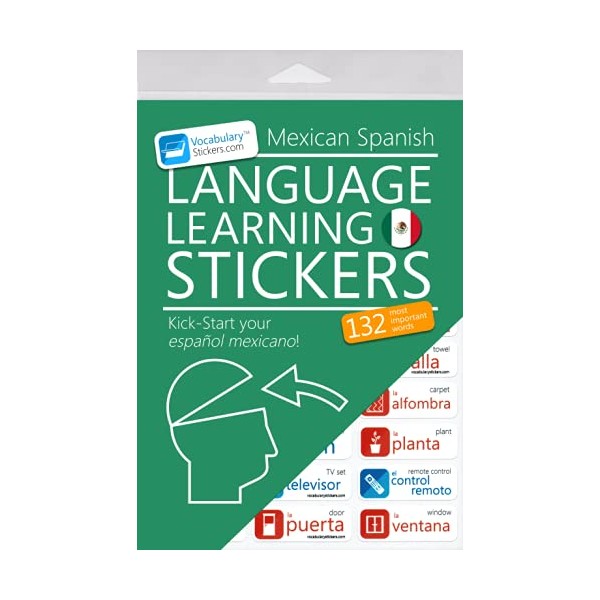 - You will learn 132 most important Mexican Spanish 🇲🇽 words in no time, just by placing your language learning stickers around your home or office. An effortless way to learn a new language at home or in the office.