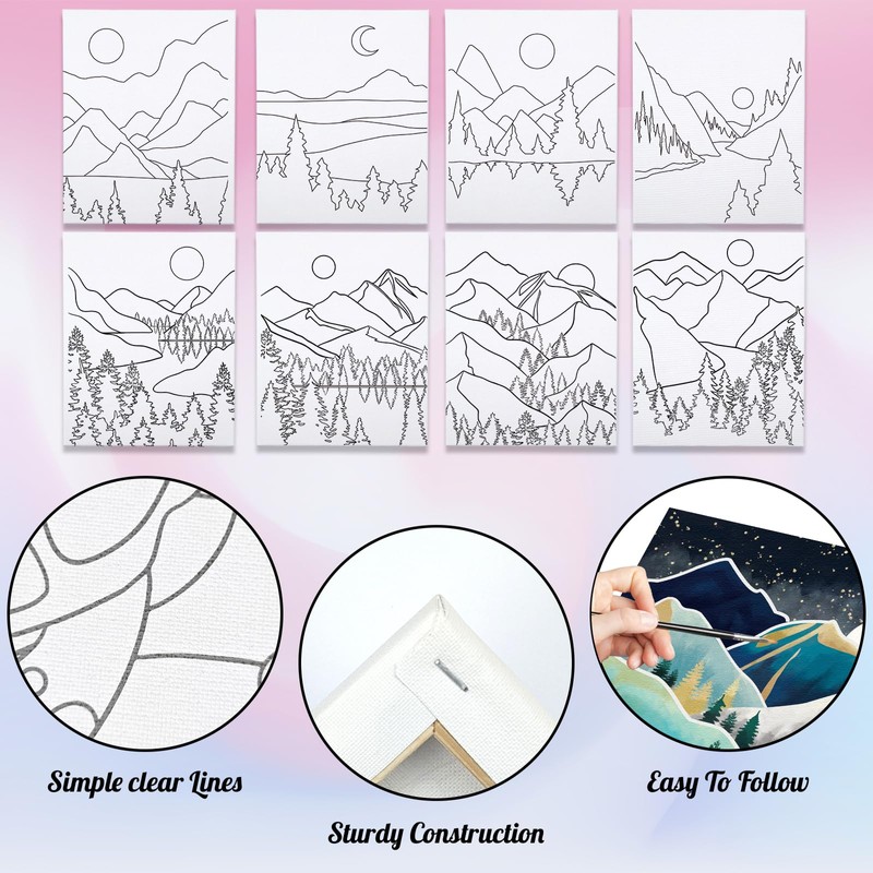 VOCHIC 8 Pack Pre Drawn Canvas for Painting for Adults, Sip and Paint Party Supplies Canvas Painting Set for Artist, Beginner, Stretched Outline Canvas to Paint Landscape Party Favor(8x10)
