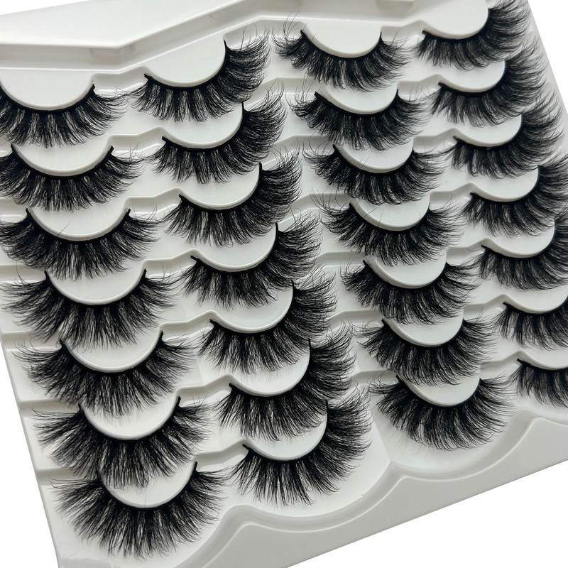 VOCOAK Mink Lashes Wispy Fluffy Cat Eye Strip Lashes Pack 3D Faux Mink Fake Eyelashes C Curl Long Volume Lash Strps Cateye False Eyelashes Natural Look
