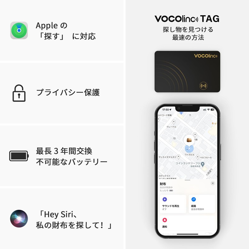 - 【Easy to find forgotten things】If you lost items using VOCOlinc Air tag card within the Bluetooth range (up to 60m), you can ring a sound in the "search" app or ask Siri for help
