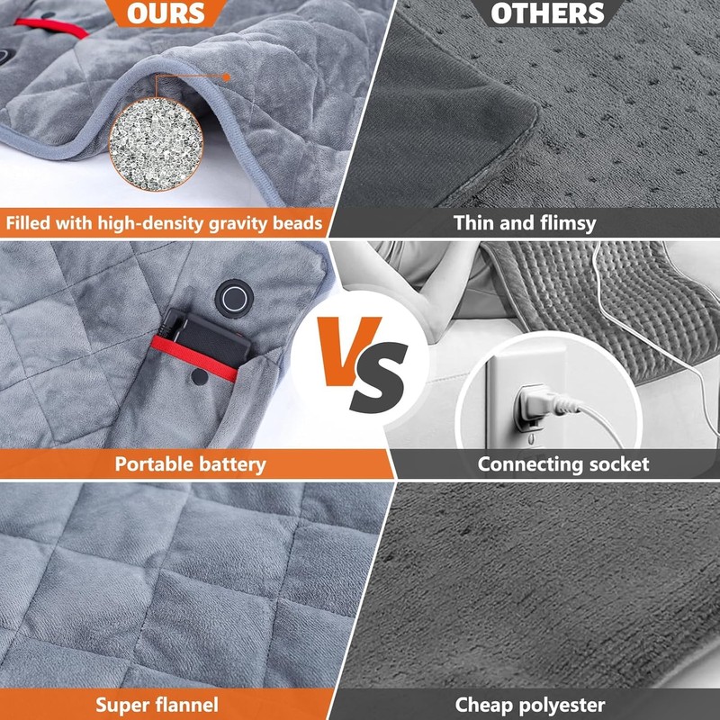- Cordless Heating Pad with Battery: This Cordless Heating Pad comes with a 10000 mAh mobile battery, allowing you to use it anywhere, anytime, without being restricted to a location near an outlet. So you can get fatigue relief comfortably in bed, on the couch, in your office chair or anywhere! This user-friendly design ensures that you can avoid injuries due to short circuits in your home wiring, while also ensuring a very large space to move around