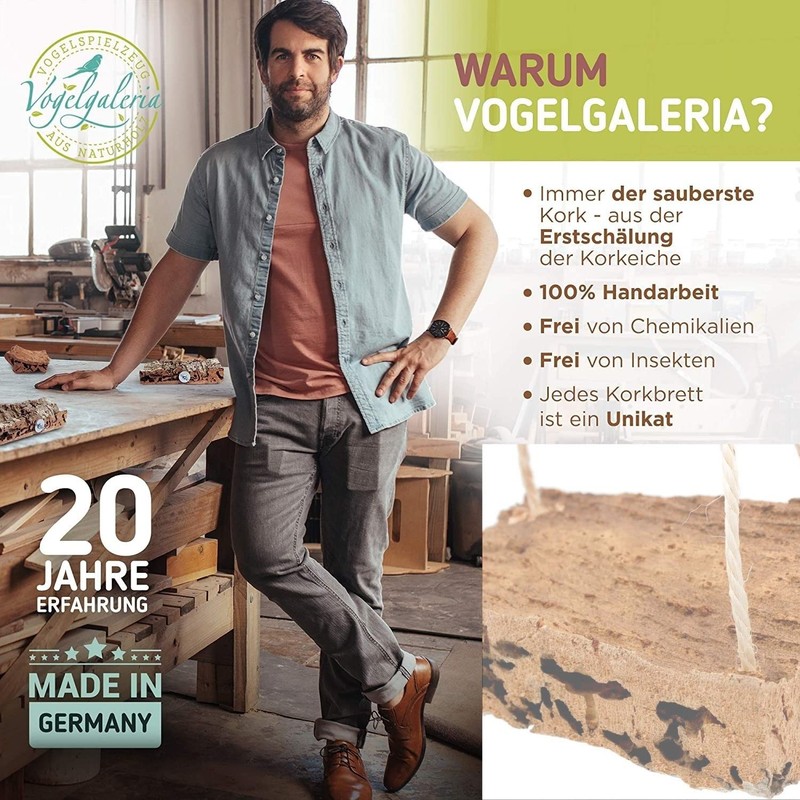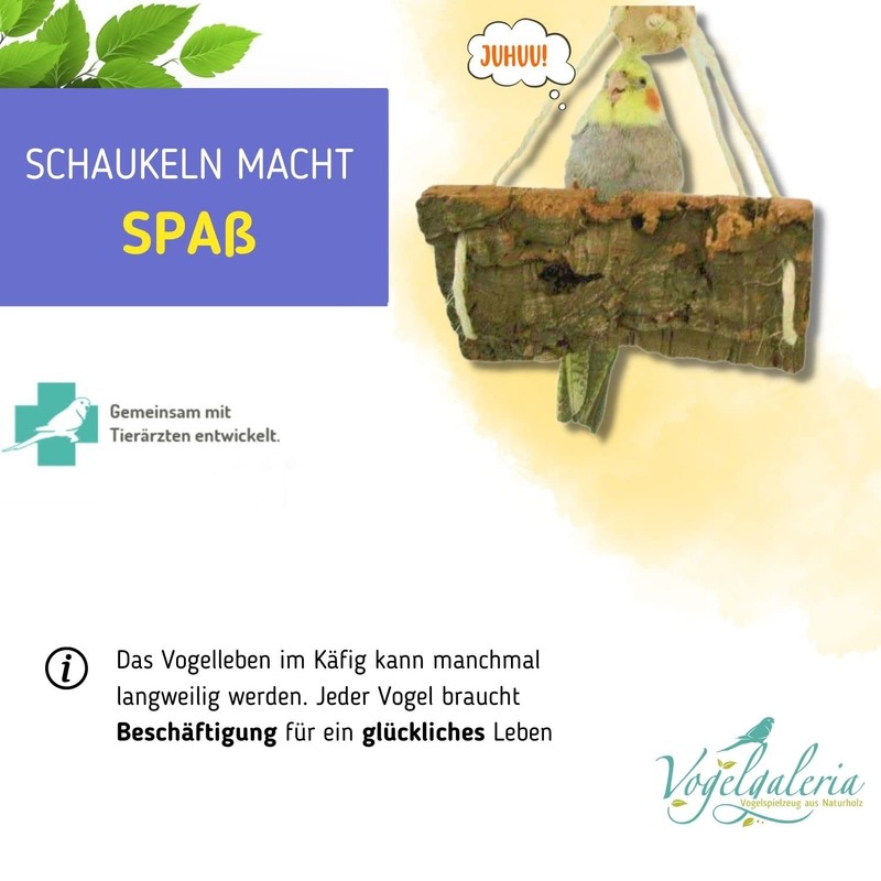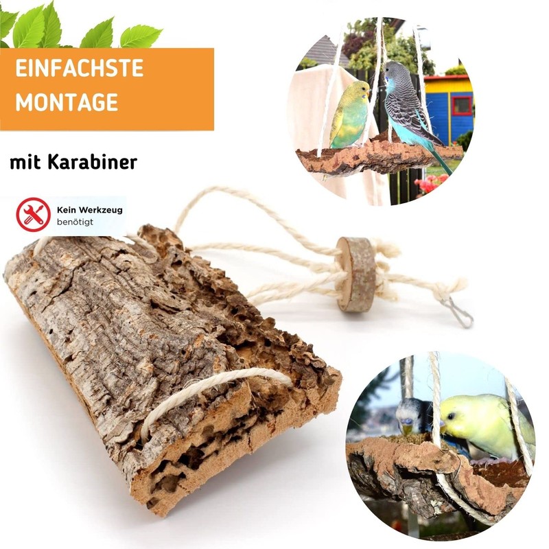 Vogelgaleria® Exciting cork swing M, bird swing, seat board and pickstone at the same time