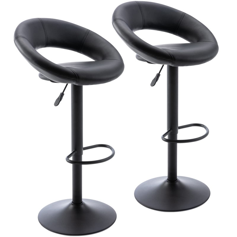 Vogue Furniture Direct Adjustable Bar Stools, Modern Cute PU Leather Swivel Barstools with Hollow Back, Airlift Counter Height Bar Chairs for Kitchen Dining Pub Cafe, Set of 2 (Black, Black Base)