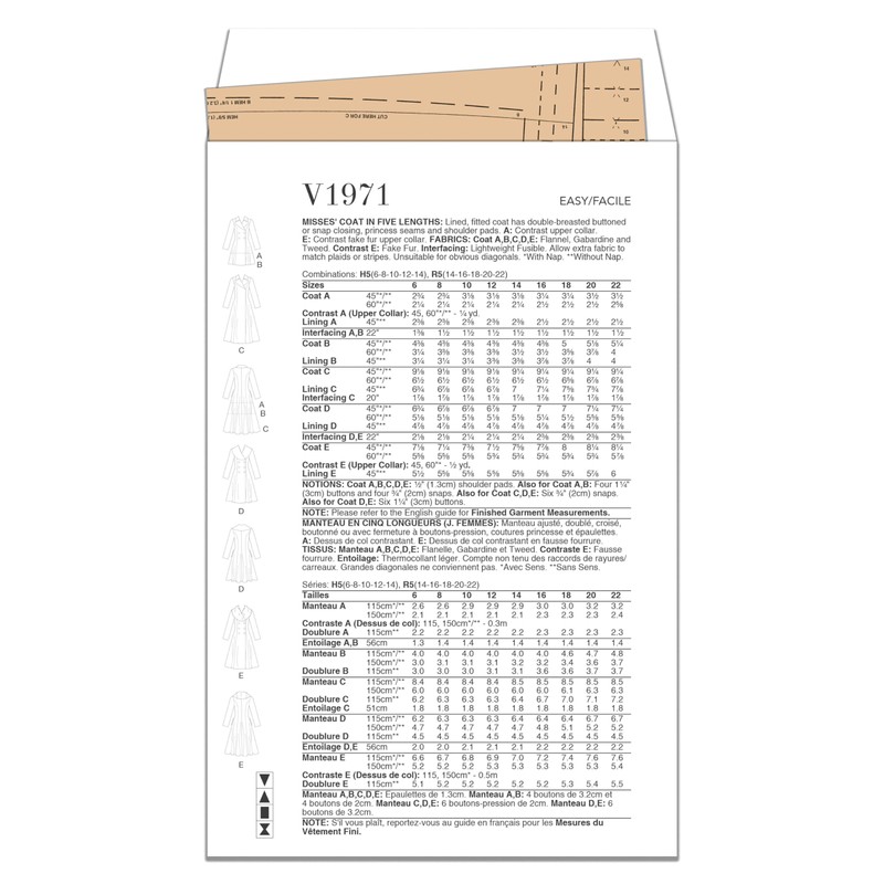 Vogue Misses' Lined and Fitted Coat Sewing Pattern Kit, Design Code V1971, 6-8-10-12-14, Multicolor