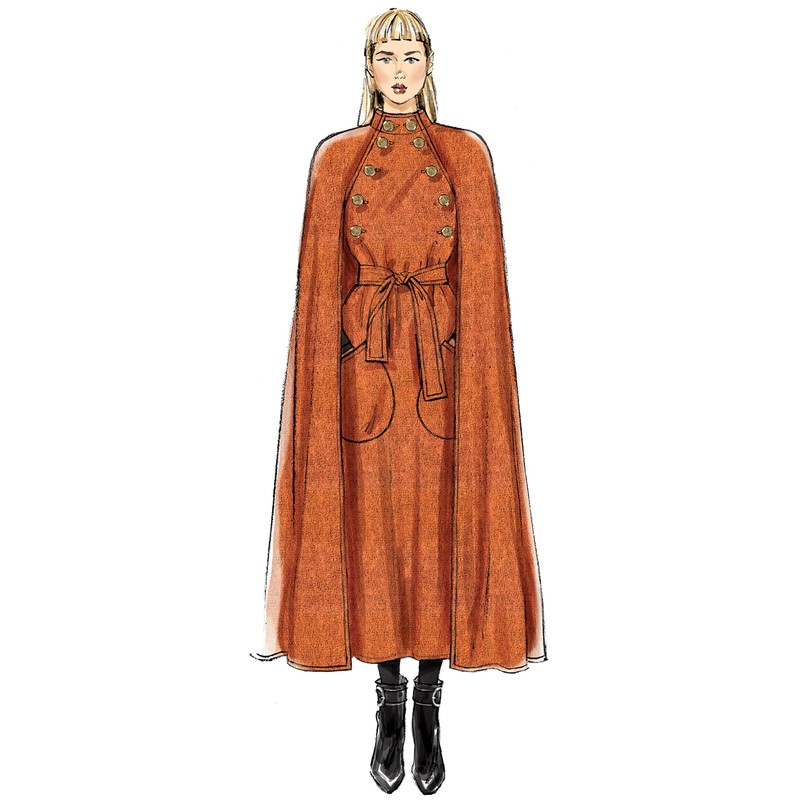 Vogue Patterns V9288ZZ0 Outerwear Misses' Cape with Stand Collar, Pockets, and Belt, L-x-Large-Xx-Large, Red