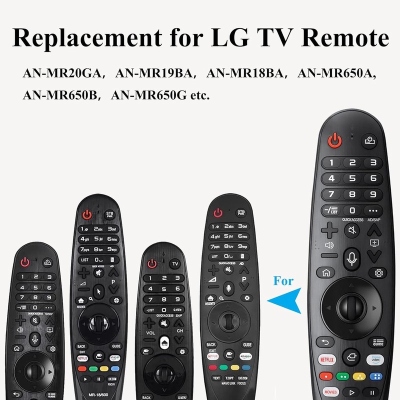 - Replacement LG Magic Remote with Pointer and Voice Function for LG Remote MR19BA/MR20GA Magic Remote Control Compatible with Many LG smart TV Models Netflix and Prime Video Hot Keys, Google/Alexa