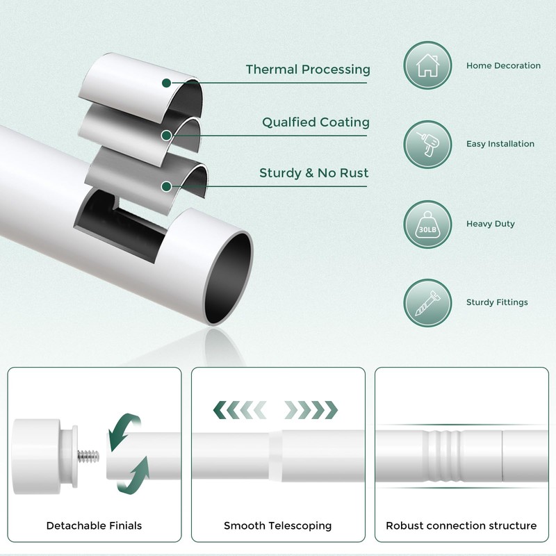 - 【EASY TO INSTALL】Our curtain rod comes with all hardware and user manual, easy and quick to install. When splicing the middle rod, try to keep the two rods at the same angle, then slowly twist to install, which can save more installation time, and most importantly, it can make you perfect installation