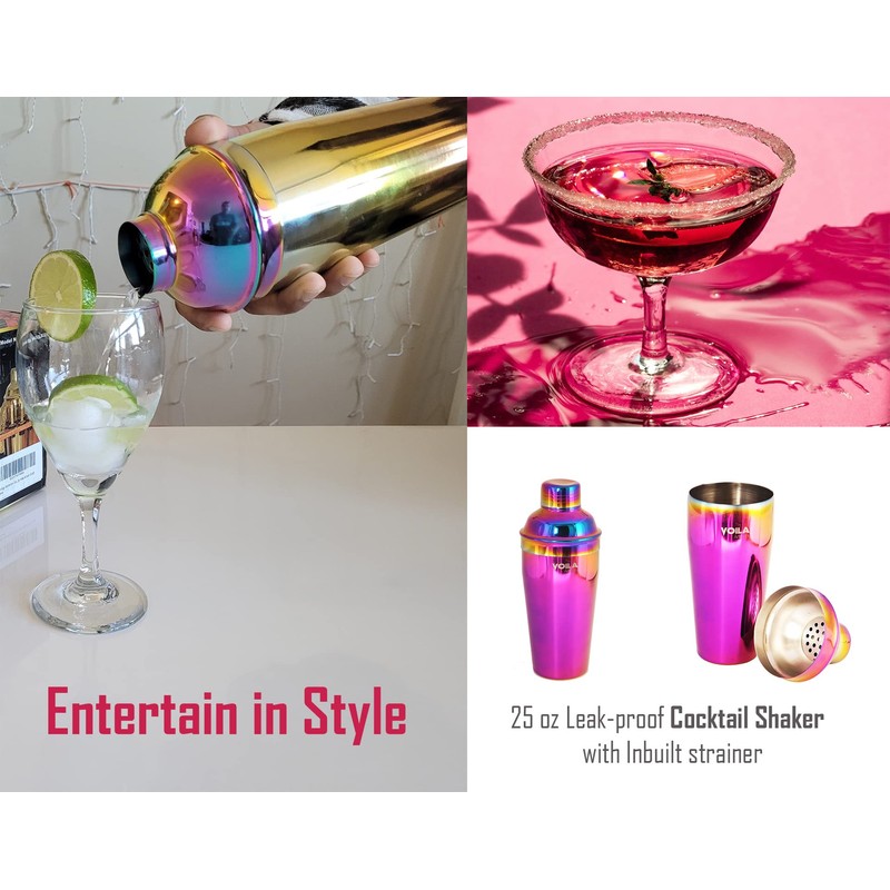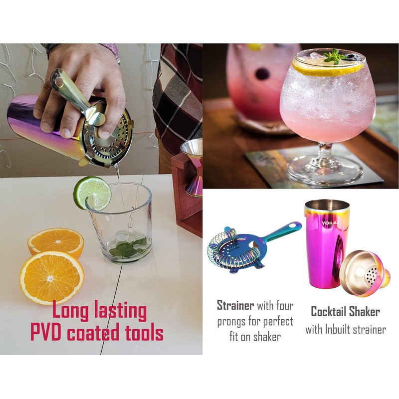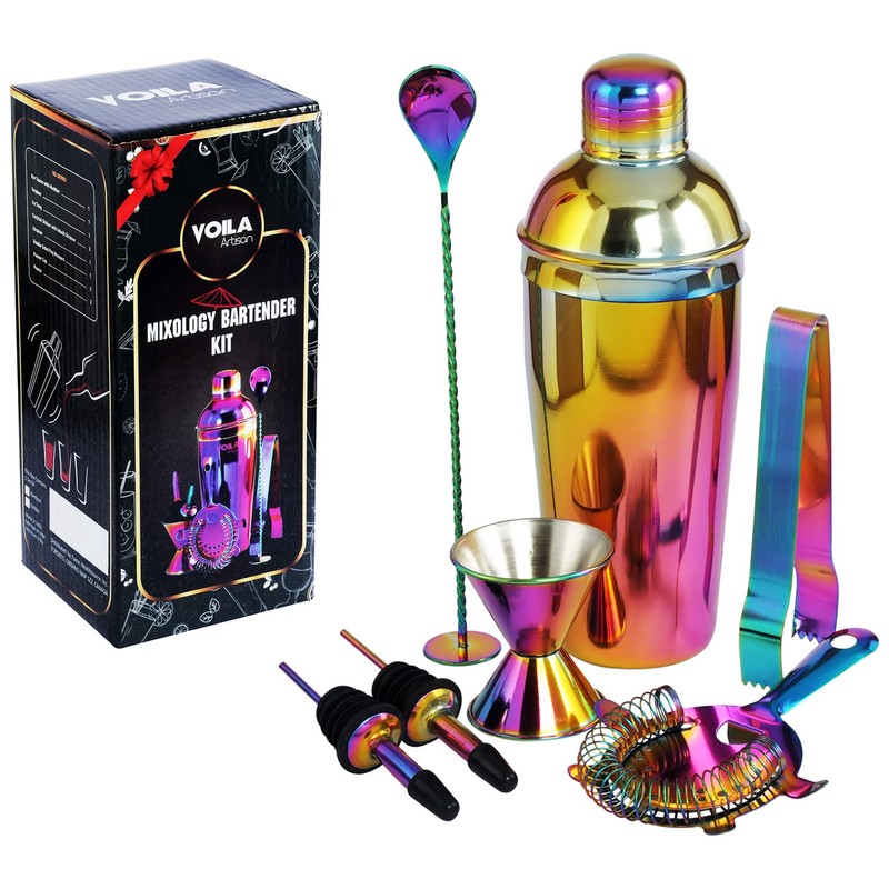 Voila Artisan 11 Pcs Premium Cocktail Shaker Set Bartender Kit, Rainbow