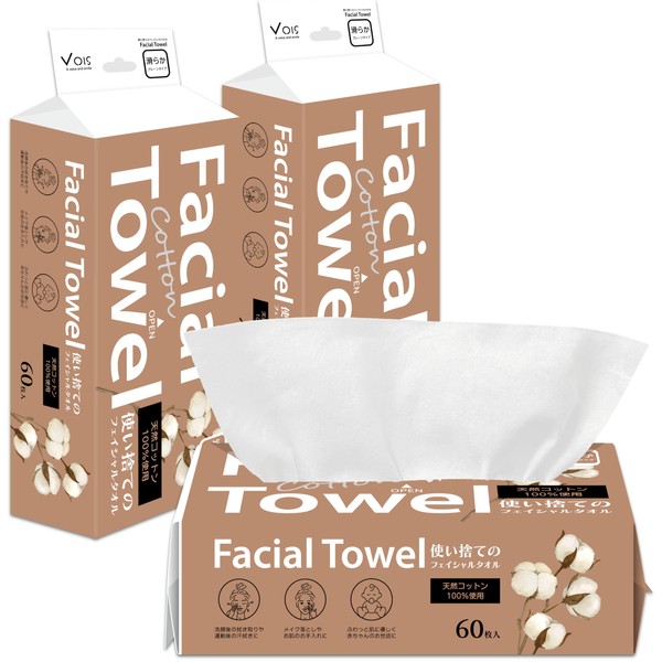 VOIS 使い捨て フェイシャルタオル コットン100% 60枚入×3個 厚手 天然コットン クレンジングタオル フェイスタオル 洗顔シート メイク落としシート 敏感肌 乾燥肌 肌荒れ対策 吸水保湿 乾湿両用 肌に優しい 赤ちゃんに優しい