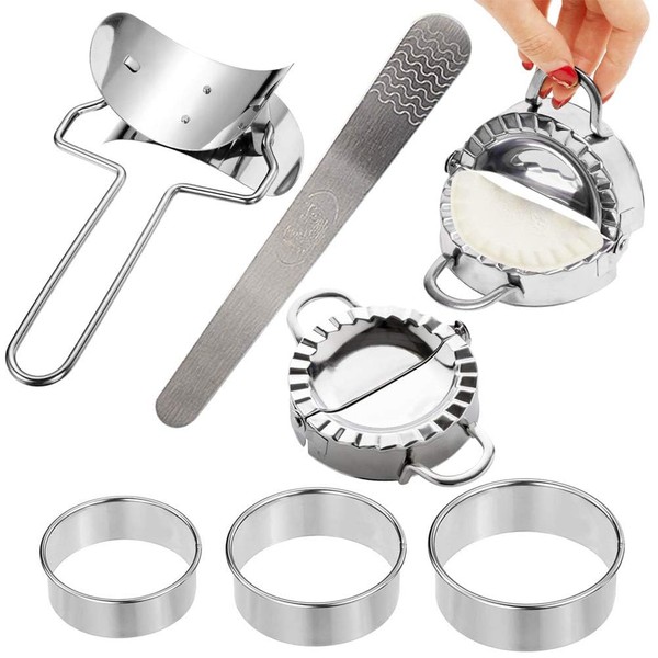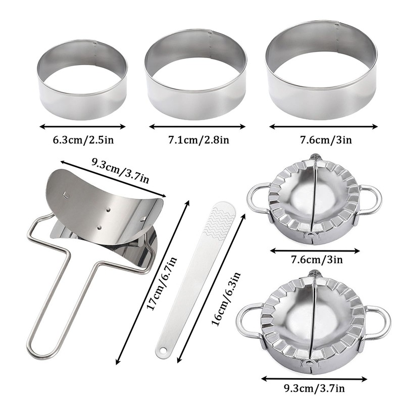 - Package include:include 7 pieces dumplings maker set in total, include 2 Pcs different size Dumpling Press molds,1 piece dumpling wrapper roller,3 pcs dumpling skin Cutter,1pc Stuffing Spoon.Everything you need to make dumpling was included.