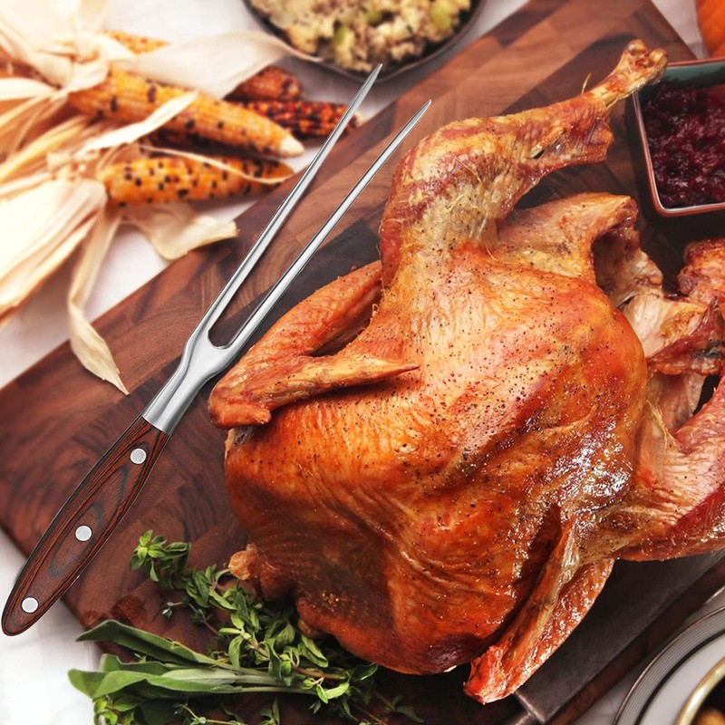 - Metal Forks with Ergonomic Design – Wooden handle and ergonomic design of carving fork for safe and comfortable grip. Moreover, triple-rivet design on handle of metal fork enhances grasping and avoids meat fork slipping off while using.