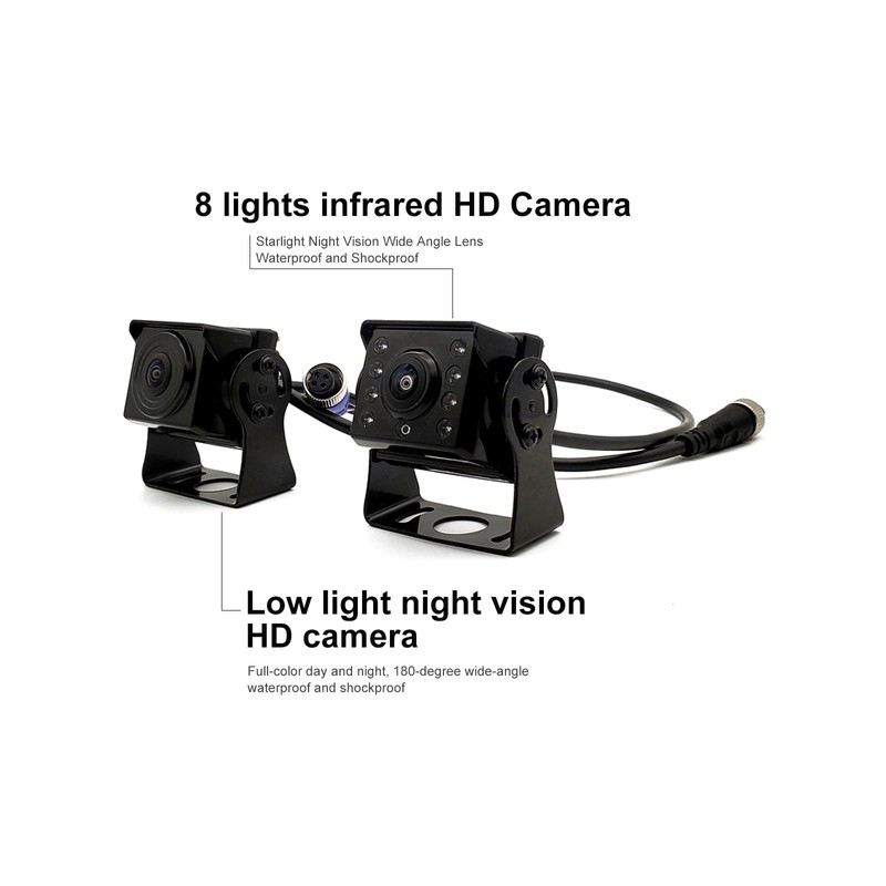 - 7-inch monitor with front/rear view camera with recording function (SD card not included), pixel resolution up to 1024x600P, any distortion is minimized to provide clear and vivid images, the monitor has two video channels and you can add a second camera.
