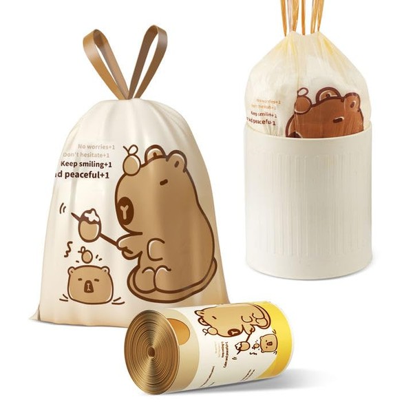 VOK 4 Gallon Trash Bags with Capybara Printed, Drawstring Small Garbage Bags,...