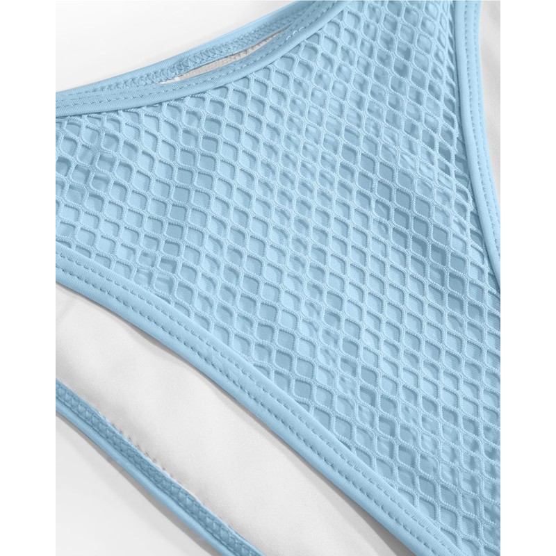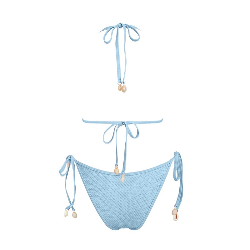 VOLAFA Women's Triangle Bikini Set Multiway Fishnet Tie Side Halter String Solid Cheeky Two Piece Swimsuit Bathing Suit, Sky Blue, 4