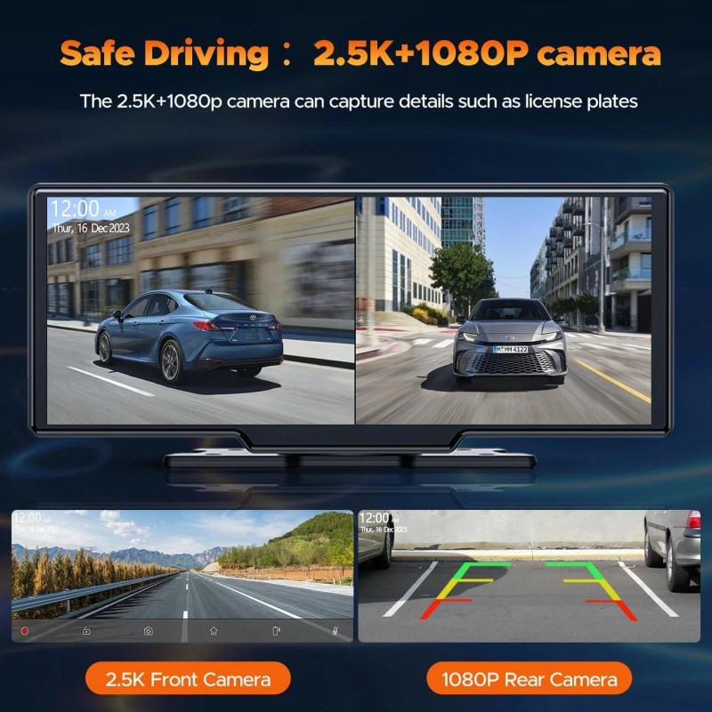 - Features 4: 2.5K Dash Cam + 1080P Reverse Camera