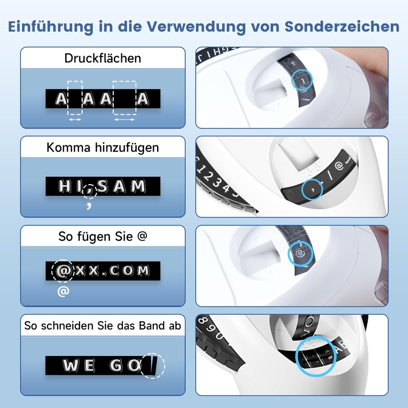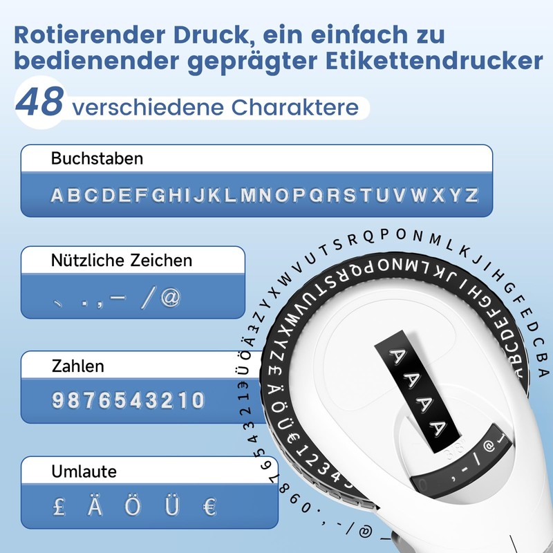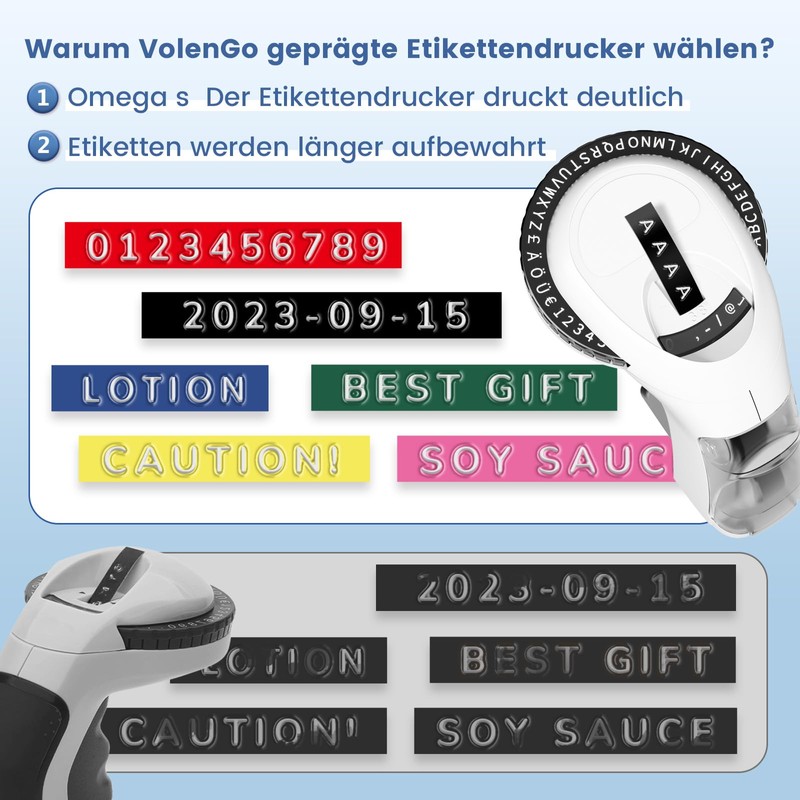 • VolenGo Embossing label maker: the embossed label printer contains 48 fonts, including the 26 letters of the alphabet from A-Z, the numbers from 0-9, and commonly used European symbols such as the pound sign, the euro sign and characters with diacritical characters used in European languages, making this a label embossing machine for Europeans