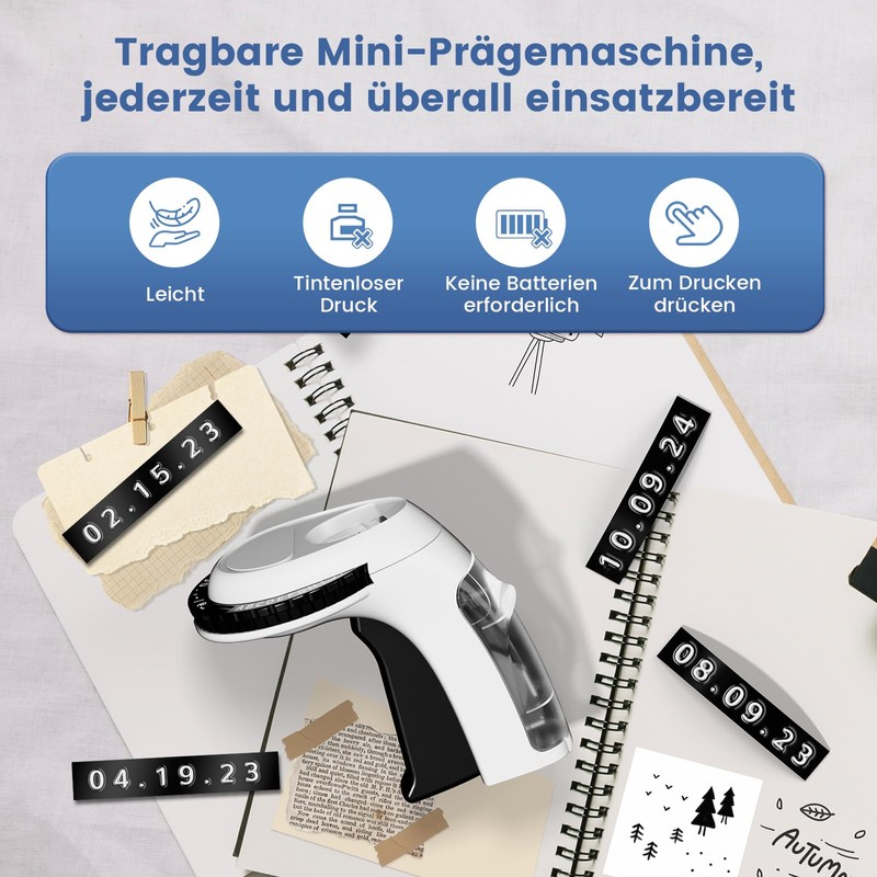 • Portable hand embossing labeler: ergonomic design, comfortable to hold in hand, no ink, no power supply, classic manual printing, select characters to be printed by turning the knob on the device. Compact design, you can take the embossing device with you to create labels anytime and anywhere