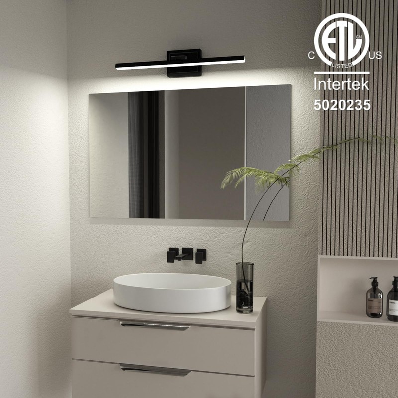 - High Quality: ETL Certificated for all bathroom light fixture. Made of high-quality metal back panel and pure white acrylic, with IP waterproof and dust proof capacity, bathroom light over mirror is suitable for humid environment. ETL Certificated for power driver.