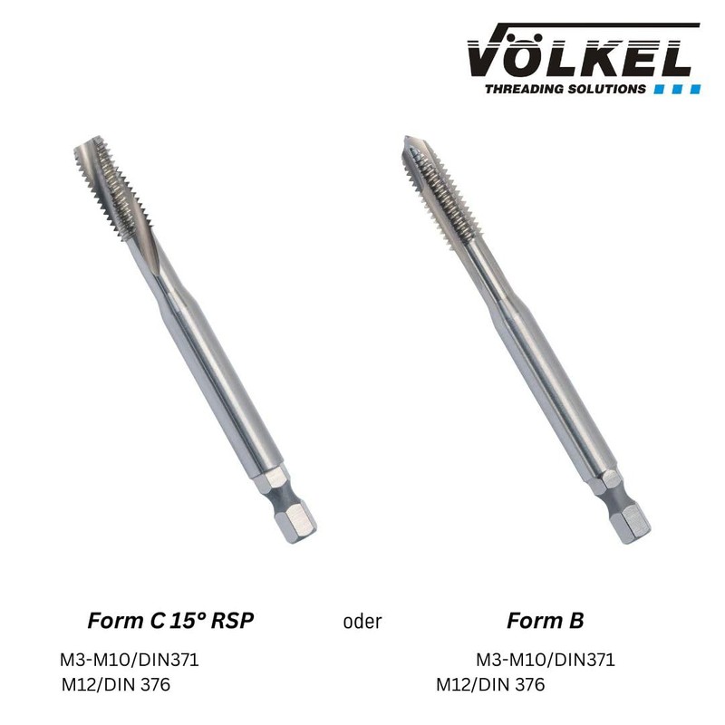 Völkel HexDrive Machine Tap (Hex Socket) 1/4 Inch Bit, HSS-E, M3-M12, DIN371/376, Form B & C, Metric Thread, Through Hole, Stainless Steel Drill, Tap Cutter