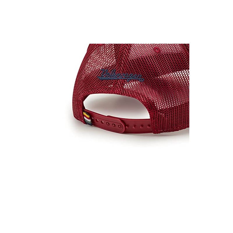 • Front panel and shield made of cotton, with beetle badge, rear panel made of burgundy mesh with dark blue Volkswagen embroidery