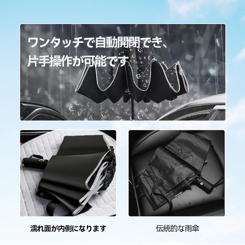 - This parasol can be opened and closed automatically with a single touch, so you can use it with one hand, and it is easy to open the umbrella without stress. Very convenient when getting in and out of a car or when you have only one hand, it can also be used in emergencies