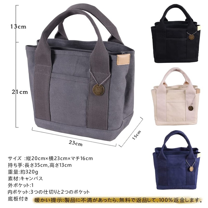 • Ideas for use: There is a pocket on the outside.You can put your keys, phone and so on in it.The mini tote bag fits a lunch box or plastic bottle and is perfect as a lunch bag