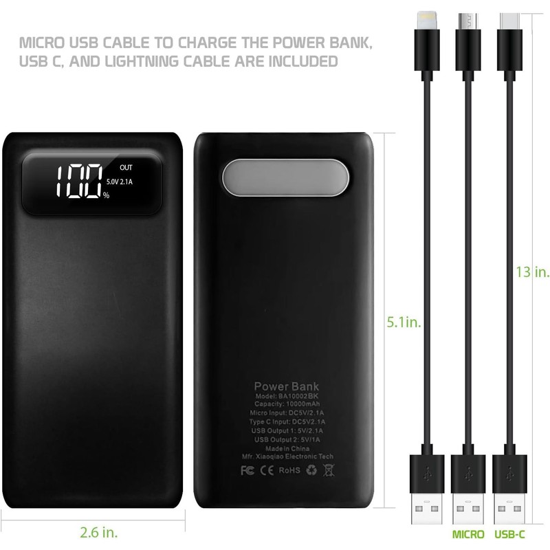- ▶[FAST CHARGING] Custom made but also includes 3 Cables, a USB Type-C, MicroUSB, Lightning fast cable as well, simply plug in your device, or others with the additional power port. in the power pack and connect your device for fast 2 charging.