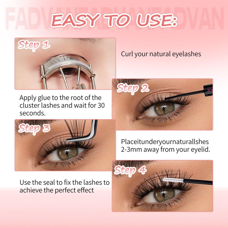 - 【Effortless 10-Second Application】① Hold clusters with tweezers ② Apply glue ③ Slide under natural lashes. The flat-backed design guarantees zero eye irritation and seamless blending. Experience buttery-smooth application!