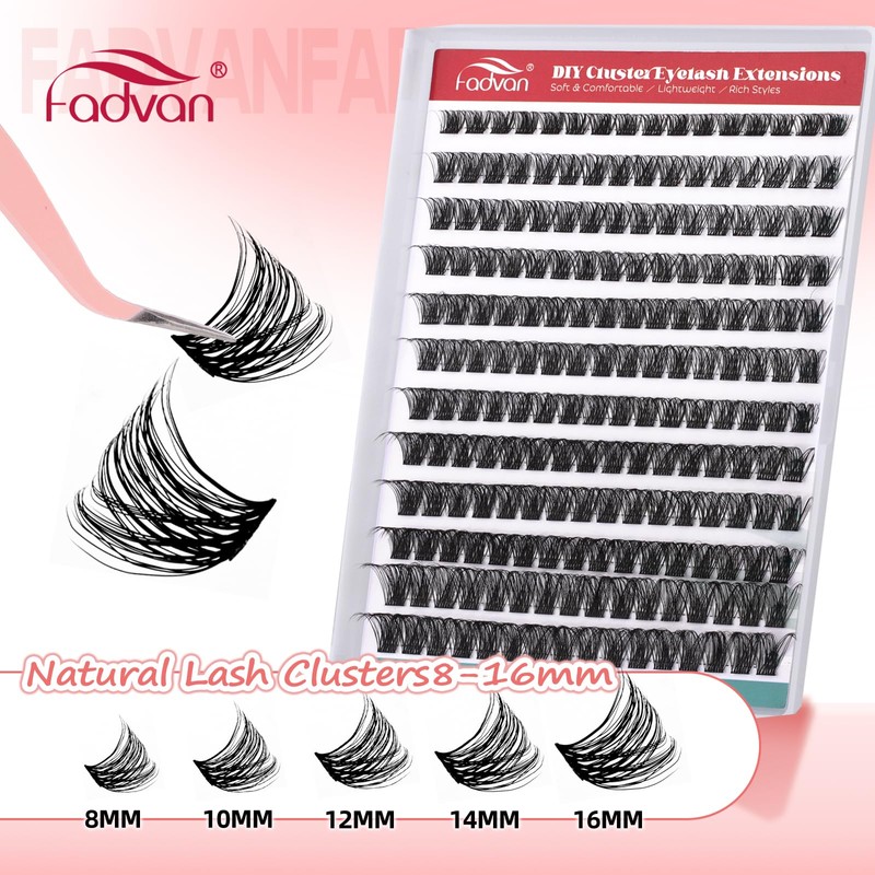 Volume Fluffy Lash Clusters DIY Kit - 8-16mm Waterproof Reusable Cluster Eyelash Extensions, Comfortable Thin Band for Beginners, No Tools Needed